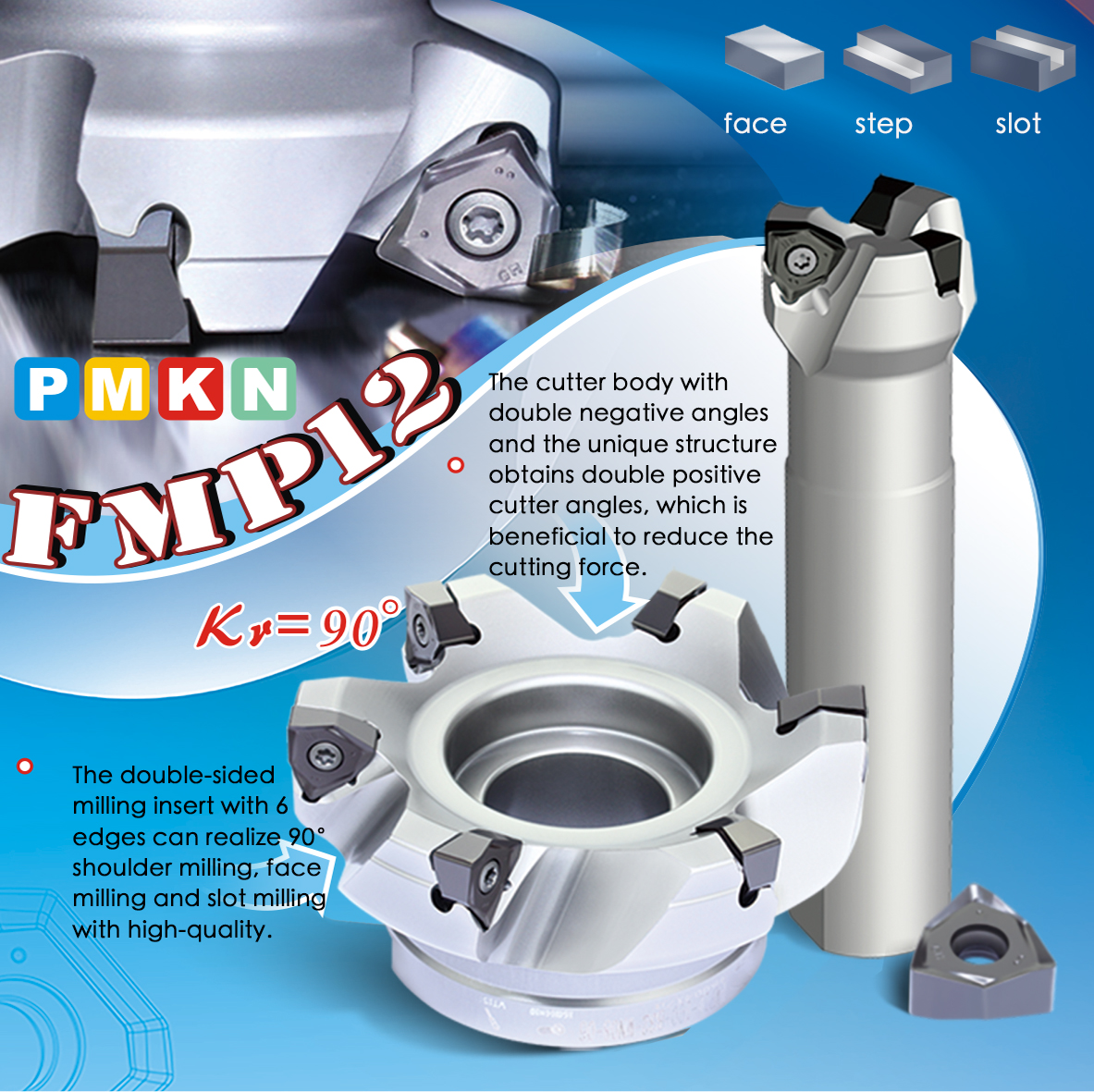 The double-sided milling insert with 6edges can realize 90°shouldermilling, face milling and slot milling with high-quality.